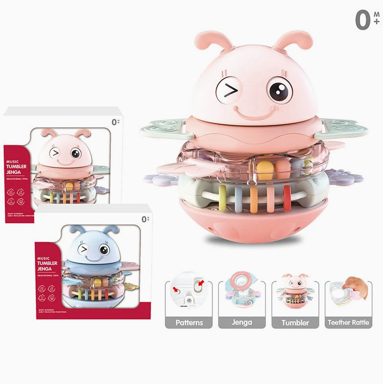 🐝 2-in-1 Design: Works as both a roly-poly and stacking toy (5 colorful layers).